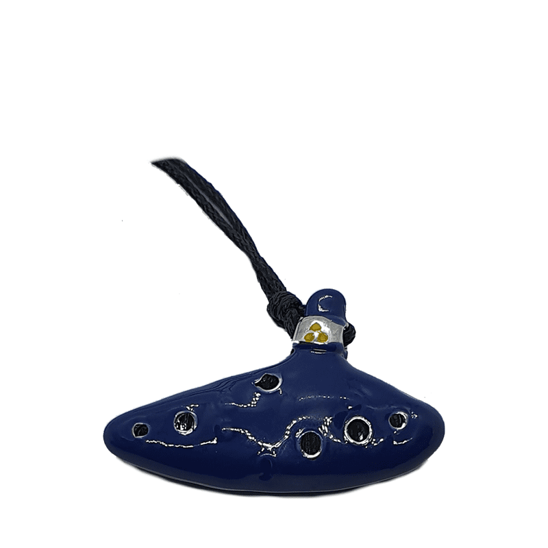 Collar inspirado en Ocarina Of Time, hecha de porcelana, con tirante de cuero en color azul.